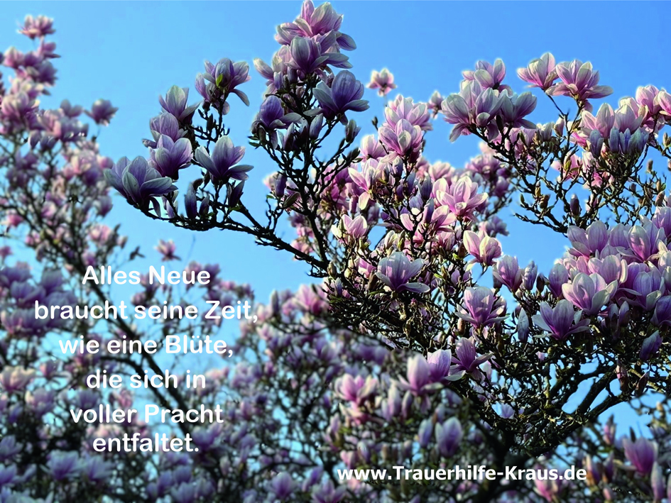 Nach der Stille der Trauer bricht ein neuer Morgen an – noch zaghaft und ungewohnt. Man möchte vielleicht schon weiter sein, wieder lachen oder Pläne schmieden, doch das Herz geht in seinem eigenen Tempo.Das Neue verlangt keine Eile. Es ist wie ein junger Trieb nach einem langen Winter: Er braucht Geduld, Ruhe und das Vertrauen, dass das Leben wieder Farbe annimmt. Gib dir den Raum, im Gestern zu wurzeln und gleichzeitig langsam nach dem Morgen zu greifen. Denn Heilung ist kein Sprint, sondern das sanfte Ankommen in einer veränderten Welt. Alles hat seine Zeit – auch das Wiederbeginnen.